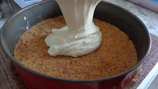 Verser le mélange biscuits + beurre au fond du moule et tasser bien le mélange. Mettre au frigo le temps de préparer le mélange de fromage.