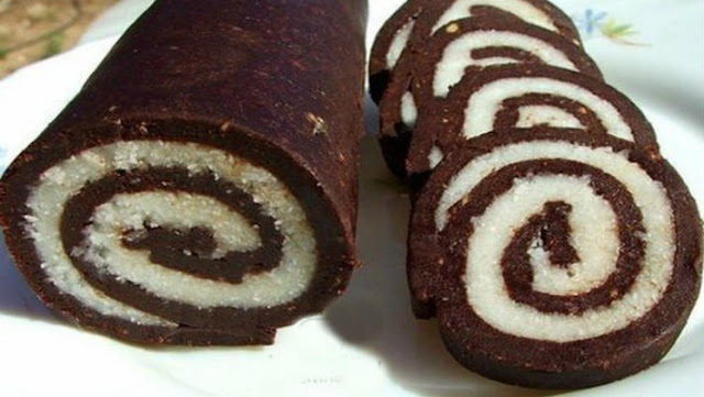 Sur une feuille de papier sulfurisé, étaler la pâte au cacao. Puis sur une autre feuille, à côté, parsemer de noix de coco râpée.